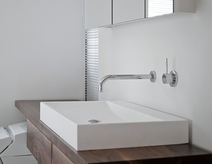 水栓穴無しが標準仕様になります。壁出水栓と組合せください。
