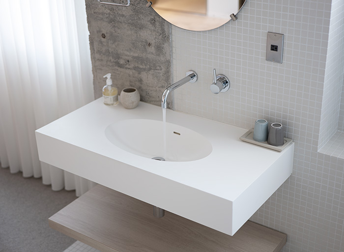 水栓穴無しが標準仕様になります。壁出水栓と組合せください。