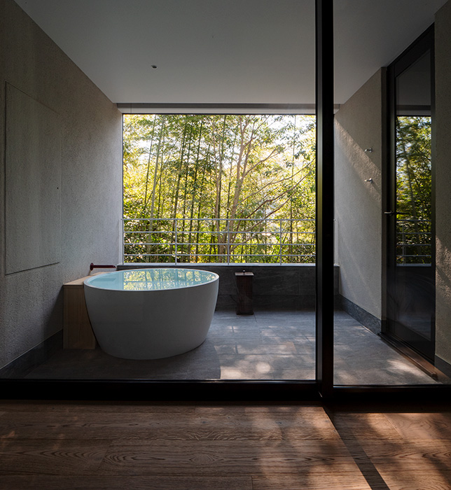 洗い場に近い位置へ設置する場合、水勾配を取っている分バスタブが傾いてしまいます。