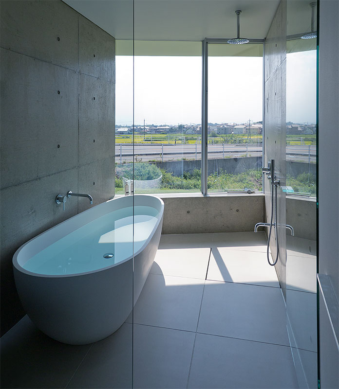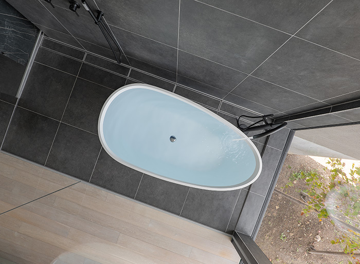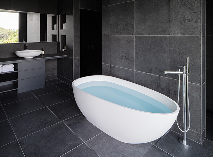 洗い場に近い位置へ設置する場合、水勾配を取っている分バスタブが傾いてしまいます。