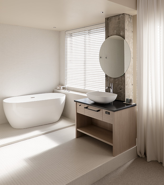 noticeキット内容:バスタブ本体、オーバーフロー付プッシュ式排水金物、直結排水用排水トラップ、排水ホース
